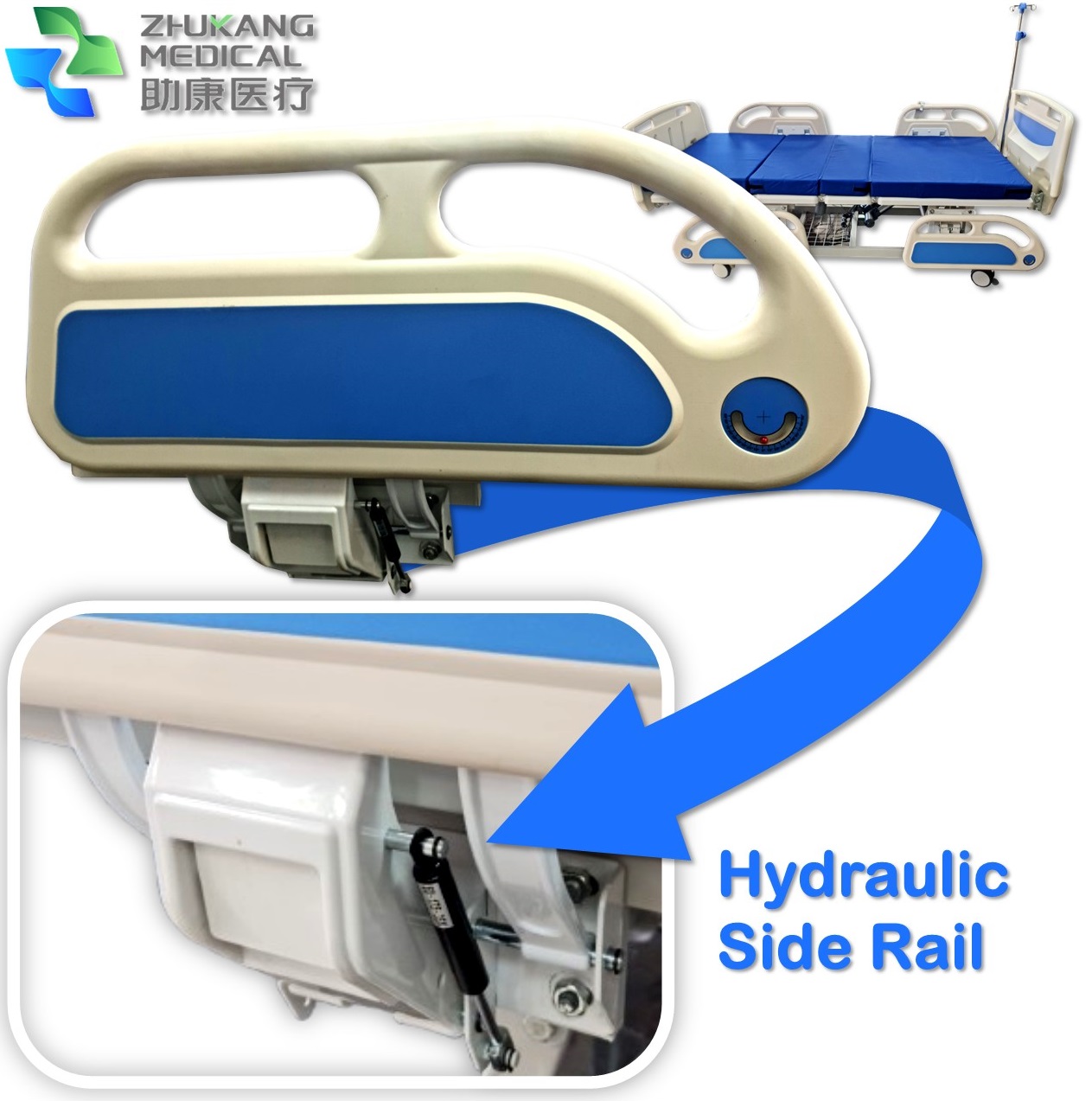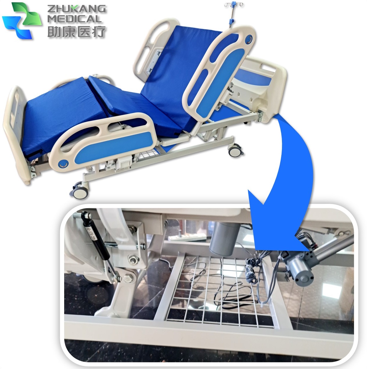 Hospital Bed with Mattress | Electric | with Mattress + I.V Stand | Hydraulic Side Rail | Angle Display | Heavy Duty | Zhukangmedical C01