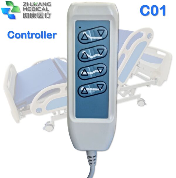 - تشمل ميزات سرير المستشفى الكهربائي C01 إمكانية تعديل ارتفاع السرير بالكامل، ومسند الظهر، ومسند الركبة، وقضبان جانبية قابلة للتعديل، وأزرارًا إلكترونية لسهولة تشغيل السرير والأجهزة الإلكترونية الأخرى القريبة.