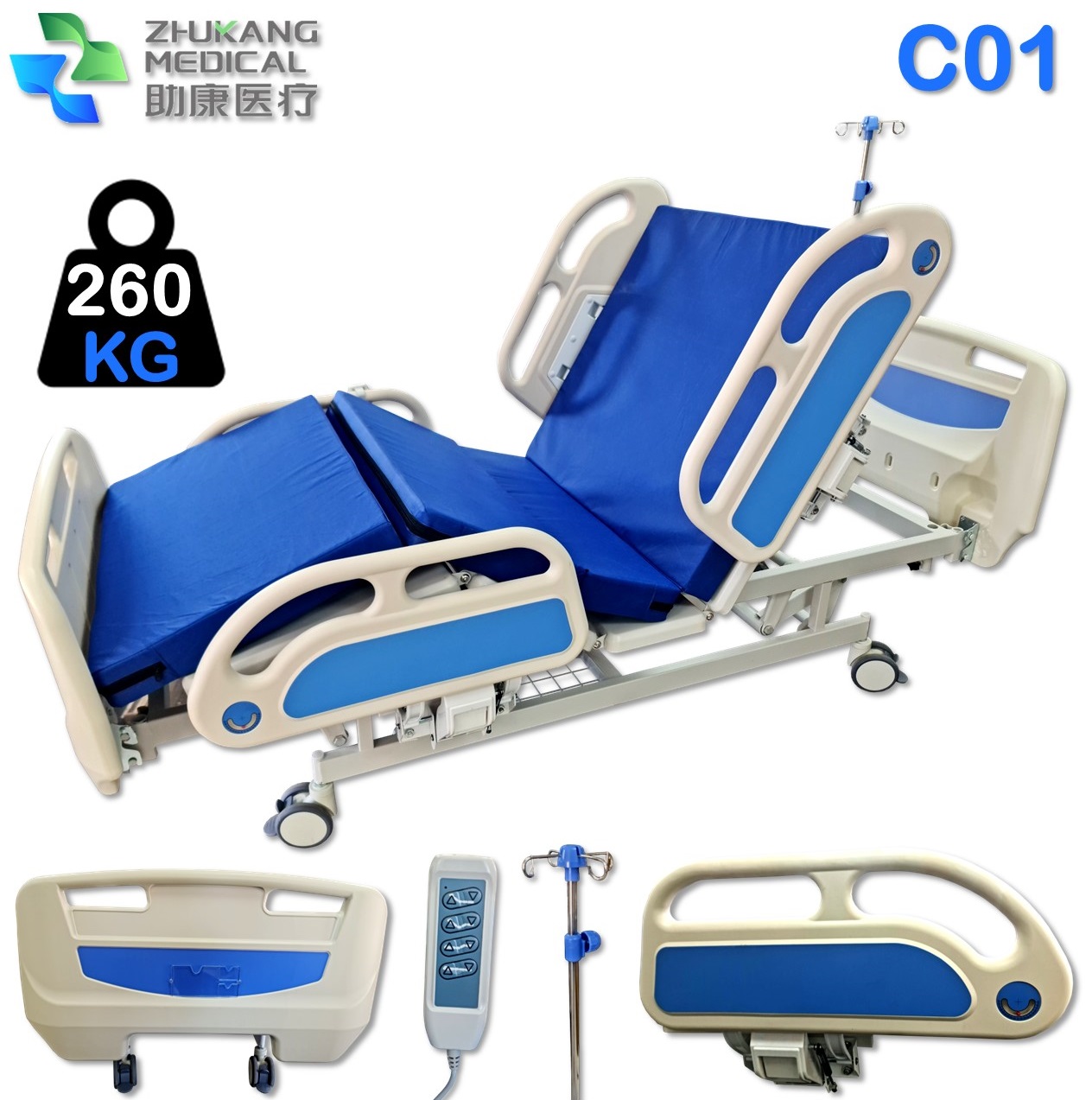- يتميز سرير المستشفى الكهربائي C01 بميزات خاصة لراحة المريض ورفاهيته ولراحة العاملين في مجال الرعاية الصحية