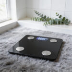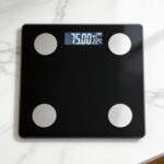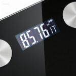 ميزان وزن ذكي يعمل بتقنية البلوتوث | يعمل بنظامي التشغيل iOS و Android | قياس نسبة الدهون في الجسم | قياس كتلة الجسم (BMI) | الكتروني | 180 كغم