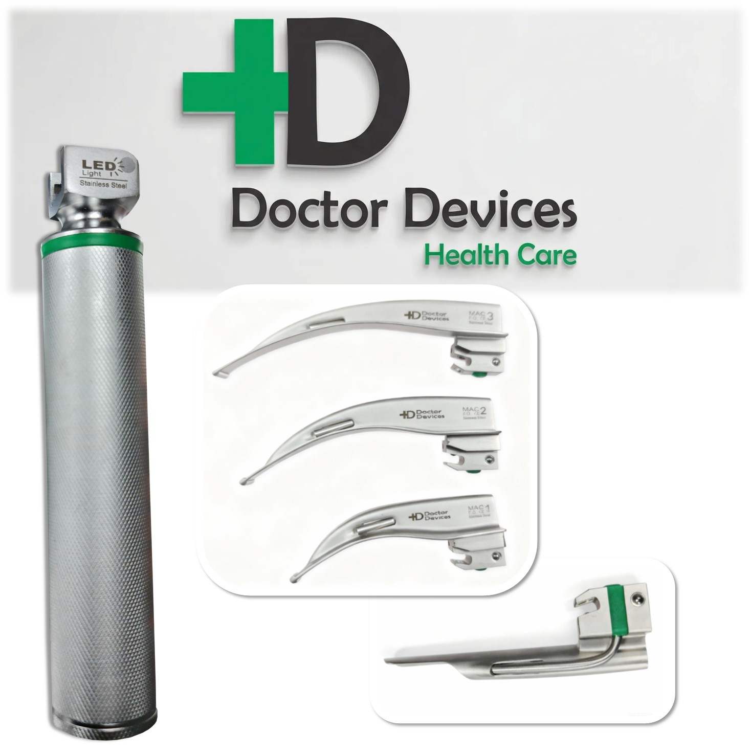 Laryngoscope Set with 4 Blades | Size 1-2-3 MACHINTOSH + Size 1 MILLER | Fiber Optic Laryngoscope | Made in Pakistan | Doctor Devices M0404