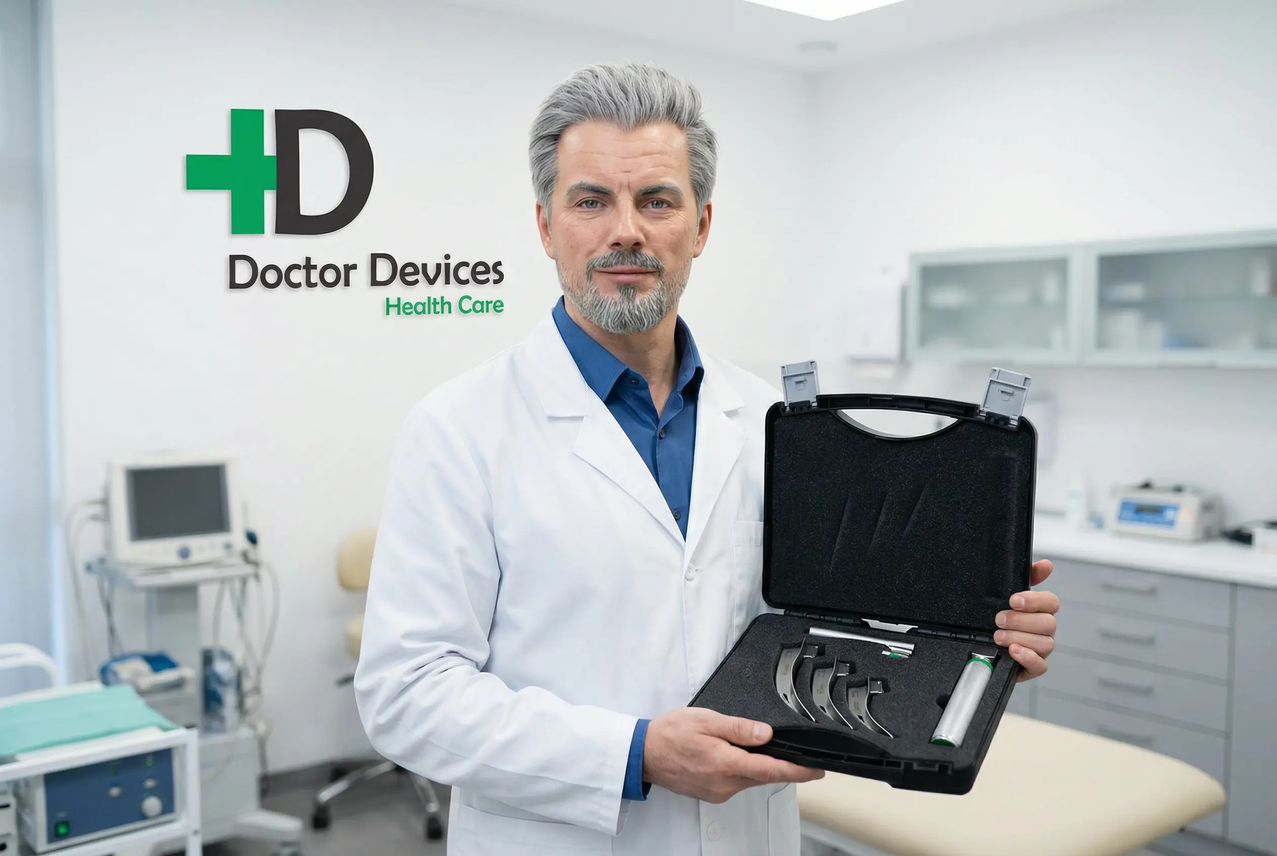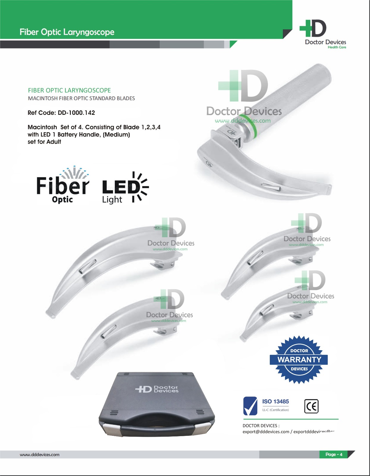 Home » Products » New Products » Laryngoscope Set with 4 Blades | Size 1-2-3 MACHINTOSH + Size 1 MILLER | Fiber Optic Laryngoscope | Made in Pakistan | Doctor Devices M0404
